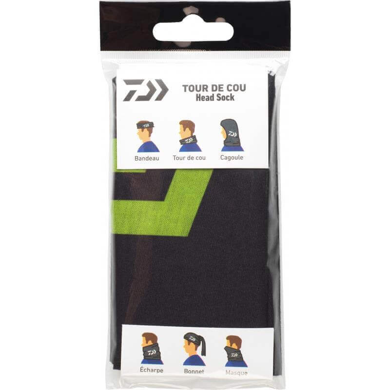 Cache-cou de la marque Daiwa modèle de couleur noir avec logo vertspécial pour la pêche à l'achigan et aux carnassiers.