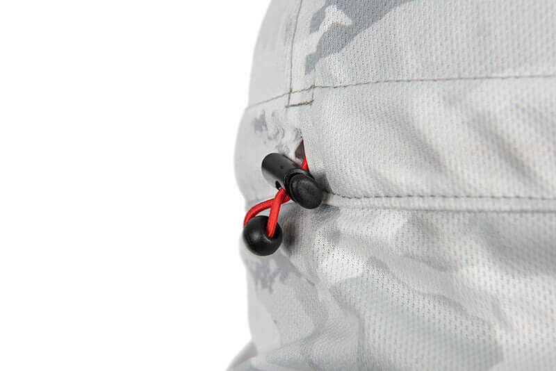Casquette avec protège-oreilles de marque Fox Rage design camouflage en couleur gris clair avec logo, est idéal pour le mode Black-Bass, pour les mois d'été ou pour un usage urbain.