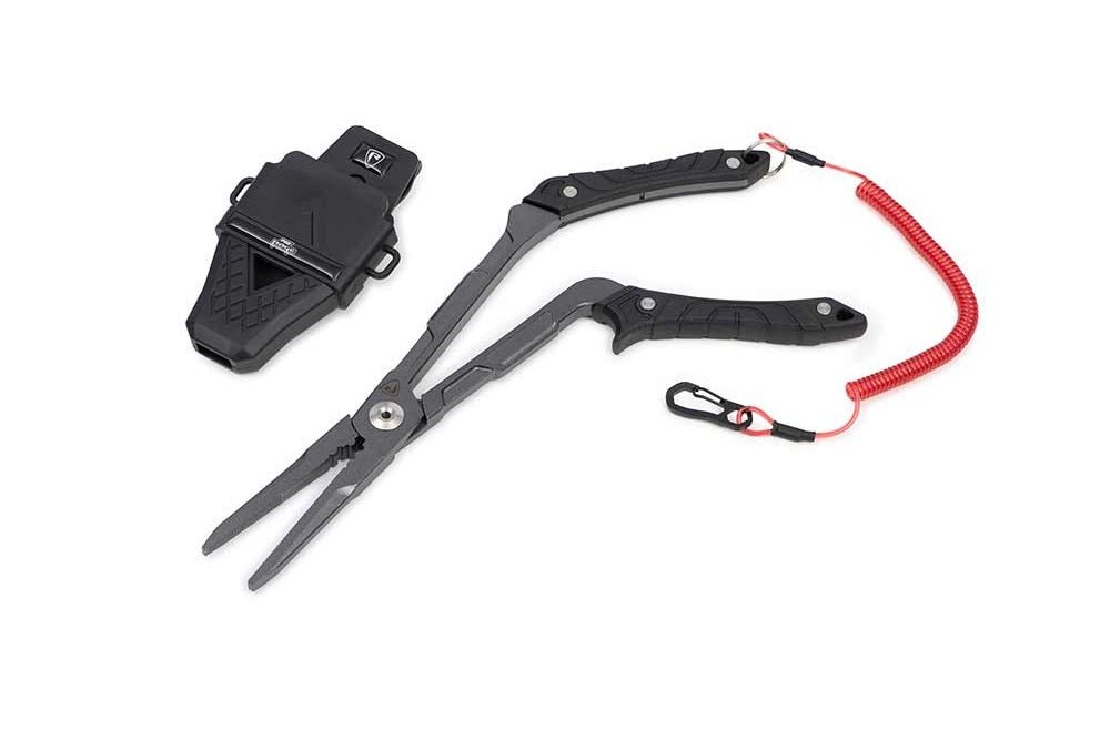 Pince + attelage de la marque Fox Rage avec une finition gris métallisé, spécialement pour la pêche au bar et aux carnassiers.
