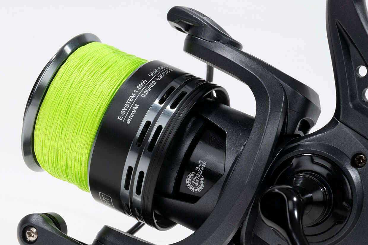 Moulinet de spinning de la marque Hart, modèle Bogus, en couleur noir y vert, spécial pour la pêche au black-bass et aux carnassiers.