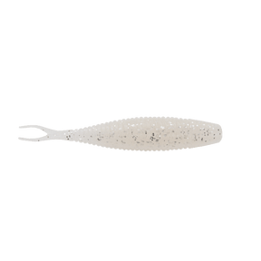 Leurre souple en forme de poisson 76 millimètres de la marque Yamamoto modèle Champ d'application Shad en couleur blanc avec avec peinture argentéespécial pour la pêche au black-bass et aux carnassiers.