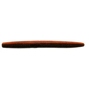 Leurre souple en forme de ver 127 millimètres de la marque Yamamoto modèle Fat Senko couleur orange avec taches rouges et noires. C'est un ver imprégné de sel avec un corps rond et épais irrésistible pour les prédateurs. Il a une action séduisante de la queue d'un côté à l'autre. Idéal pour les montages Wacky et Texas.