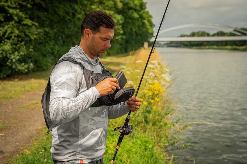 Sac à dos de poitrine Voyager camo Fox Rage modèle Voyager pour la pêche au bar et aux carnassiers.