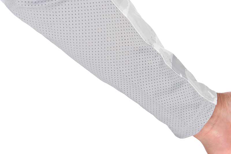 - Capuche élastiquée offrant une protection solaire complète au niveau de la tête, des oreilles et du cou