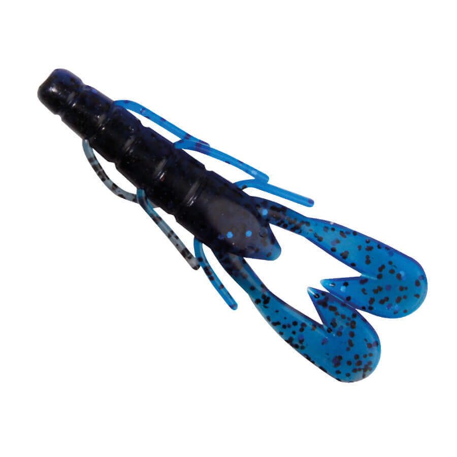 Leurres Imitation crabe de 85 mm de la marque Yokozuna modèle Manche 03 à bleu avec des rayures noires. C'est un crabe de Leurre souple avec des pinces plates et flexibles. Parfait pour les gréements texans. jig head.
