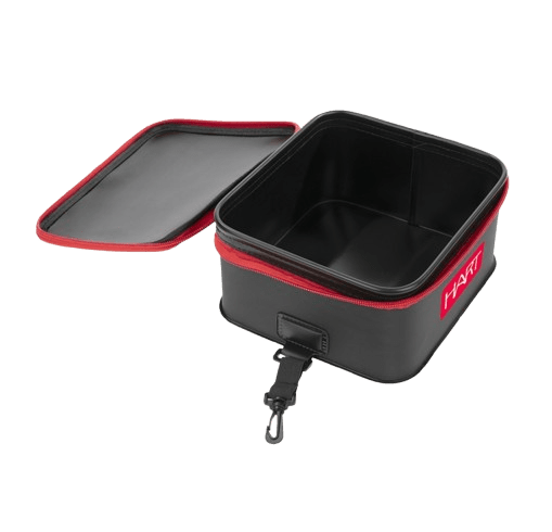 Sac semi-rigide de la marque Hart en noir et rouge, spécial pour la pêche du bar et des carnassiers.